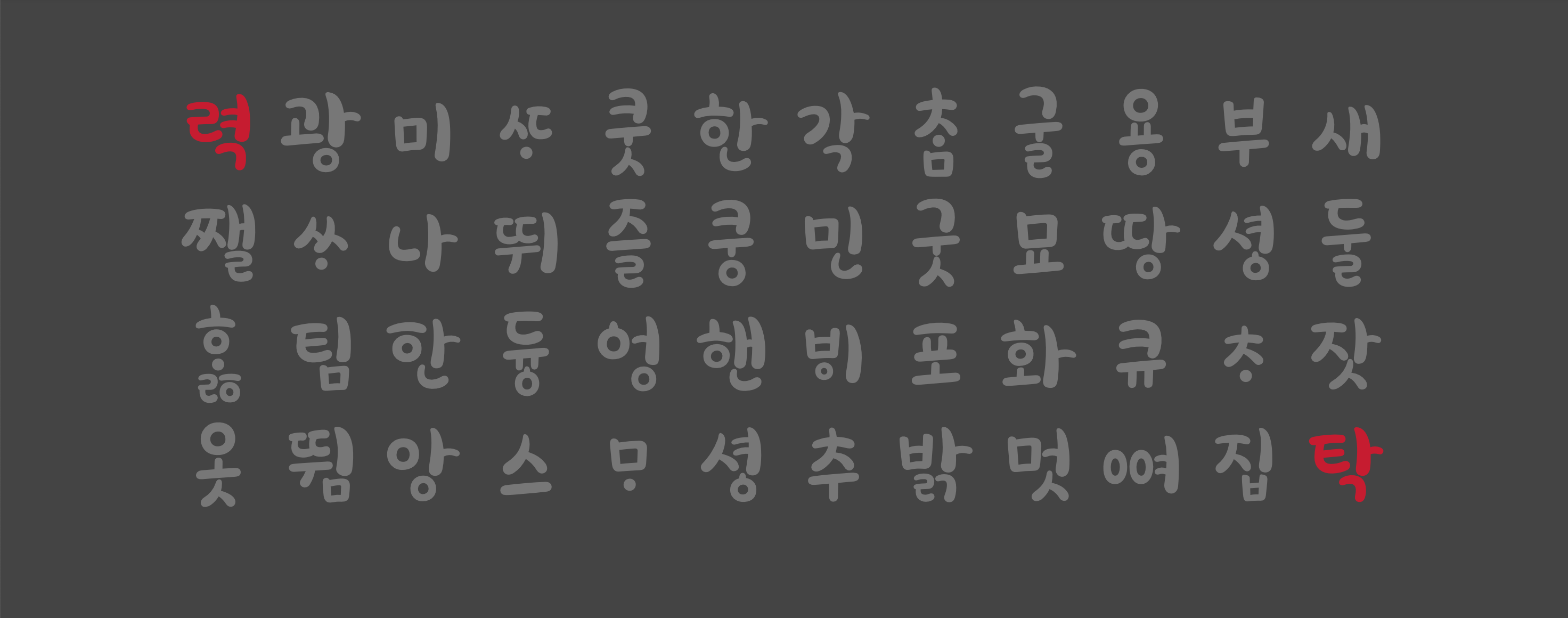 일상에서 가장 많이 쓰이는 글자, 그리고 많이 쓰이지 않는 글자. 이 두 경우가 디자인하기 가장 까다로워요. 많이 쓰이는 글자들은 말 그대로 많이 쓰이기 때문에, 사용자들의 미감이 상당히 올라가 있습니다. 조금만 어색해도 눈에 불편함을 줄 수 있죠. 그래서 더 공을 들입니다.