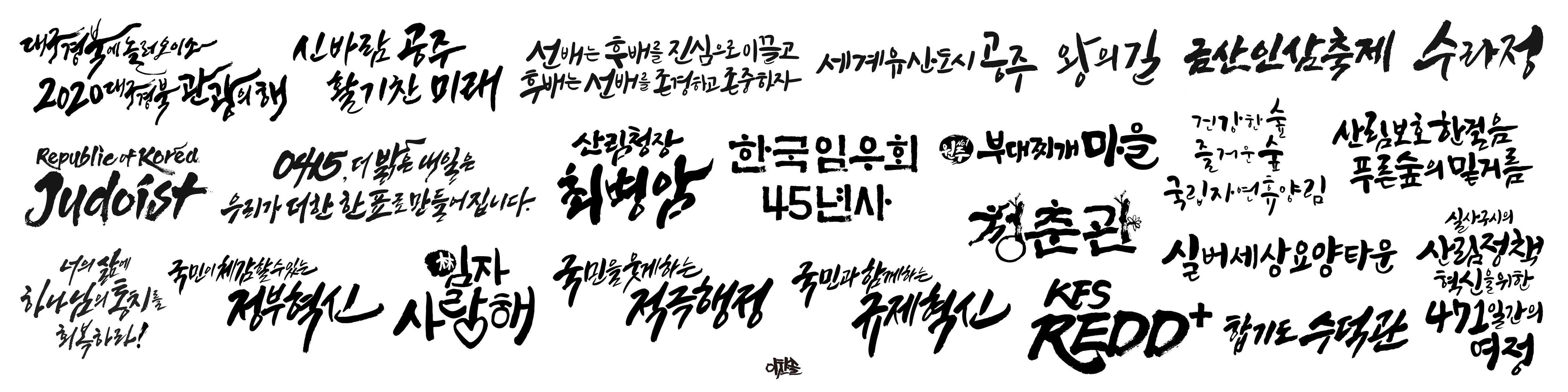 2012년부터 캘리그라퍼로 10여 년째 활동하고 있어요. 폰트 디자인을 시작하기 전에는 단순히 글씨를 ‘표현’하는 것에 집중하면서 감각적인 글씨를 많이 썼던 것 같은데요. 폰트를 배우면서부터는 한글의 ‘구조’를 익히기 위해 이성적이고 읽기 편한 글씨를 많이 쓰고 있습니다. 폰트 디자이너가 꼭 손글씨를 잘 쓸 필요는 없죠. 하지만, 손글씨를 잘 쓰면 글자의 획순에 대한 감이 생기고 표현력을 증진시키는 데 도움이 됩니다. 이건 제가 폰트 디자이너이자 캘리그라퍼로서 확실하게 보장할 수 있습니다.