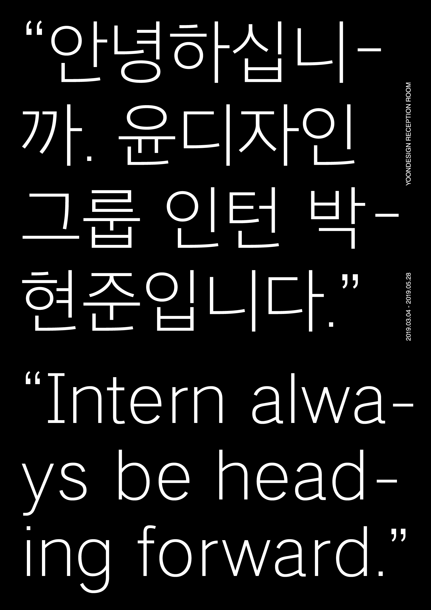 윤디자인그룹에 인턴으로 입사하면 ‘인턴 과제’라는 걸 해야 하는데요. 자유 주제로 기획과 콘셉트를 잡고 자기 글자를 만드는 거예요. 제 인턴 과제 결과물은 [인턴고딕]이라는 본문용 고딕체였습니다. 차장님과 과장님, 동료와 선배 모두 쉽지 않을 거라는 반응들이었어요. 그래도 하지 말라고는 안 했습니다.(웃음)