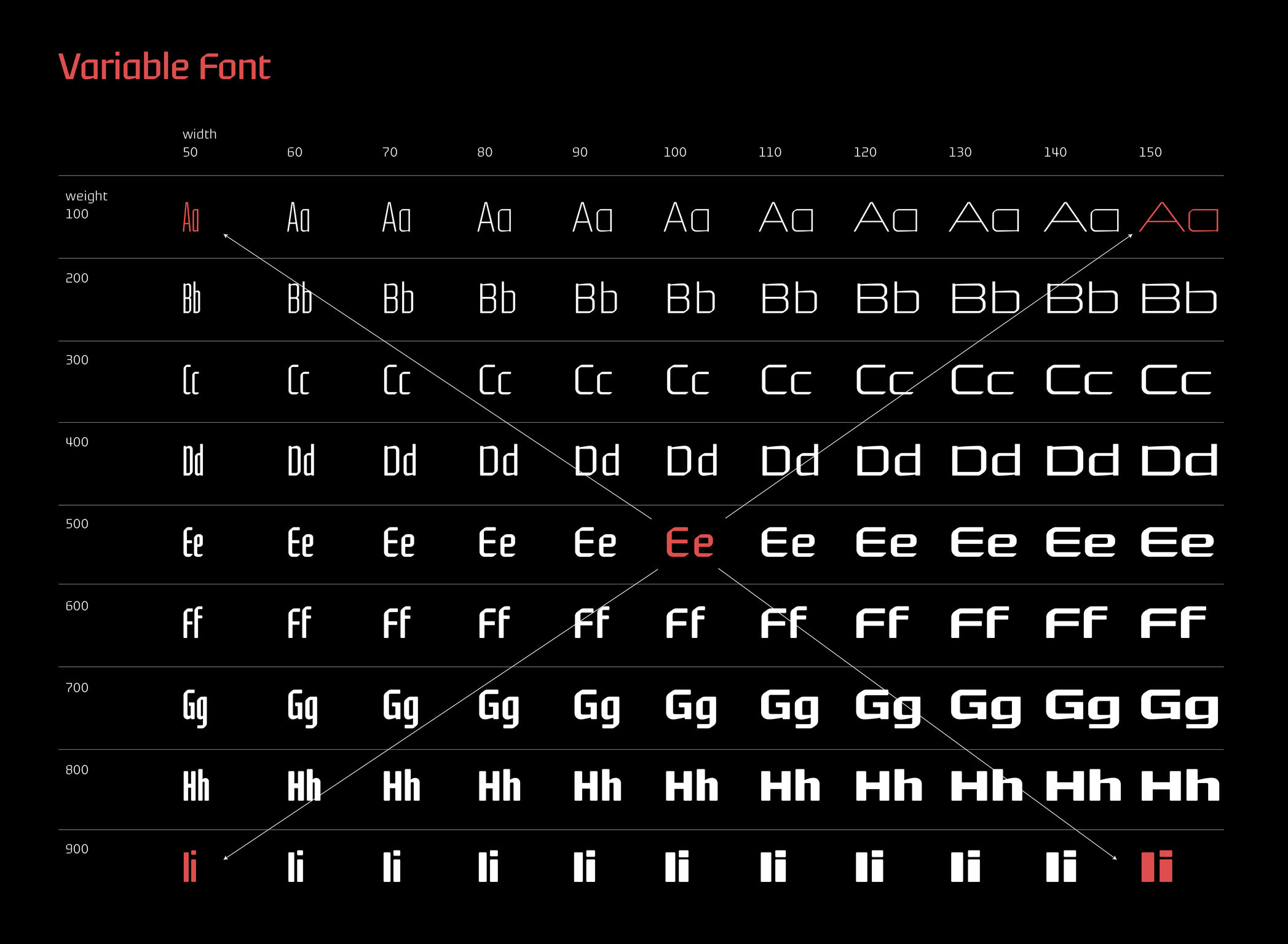 ― 제목용 16종: Thin / Light / Regular / Medium / Bold / ExtraBold / Black / Expanded Thin / Expanded Regular / Expanded Bold / Condensed Thin / Condensed Regular / Condensed Bold / Thin Italic / Italic / Bold Italic