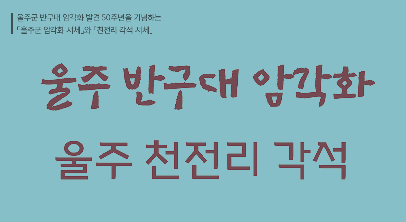 ‘반구대 암각화 서체’는 바위 전각의 특징을 살린 캘리그래피 서체이며, 반구대 암각화만의 상징인 고래의 율동감을 담았습니다. ‘천전리 각석 서체’는 천전리 각석에 새겨진 기하학적 도형의 모습을 담았으며, 선사시대와 신라시대를 잇는 역사의 흐름을 현대화된 글꼴로 구현했습니다.