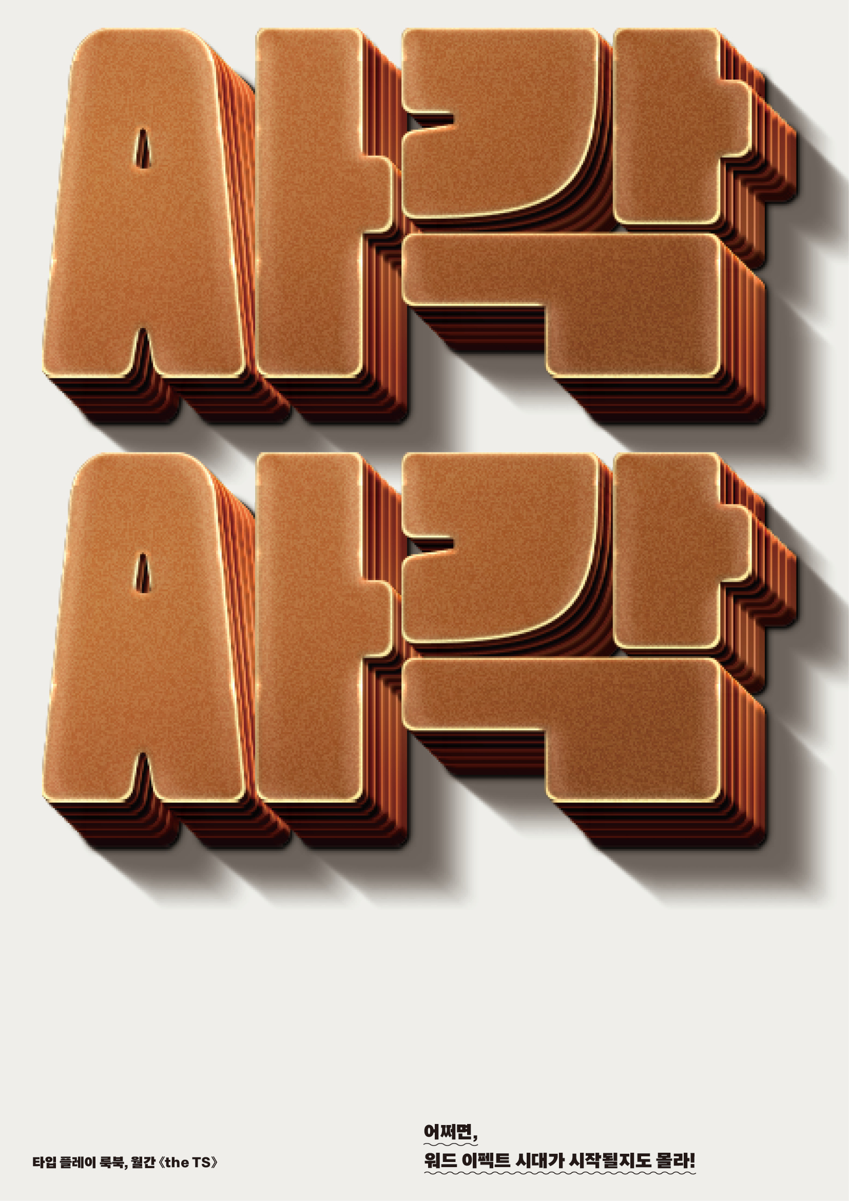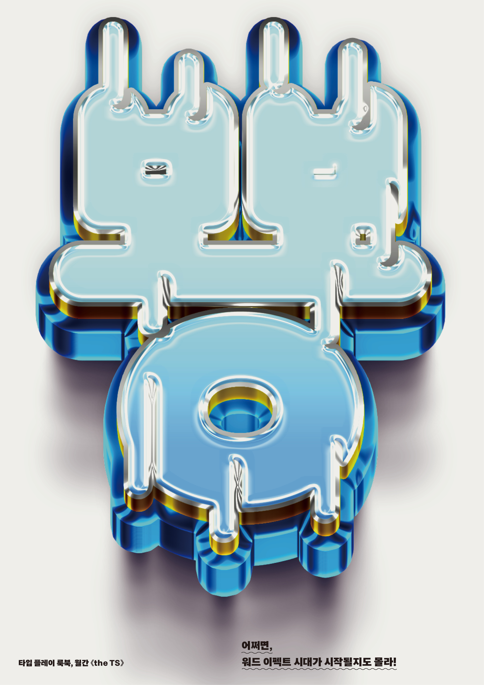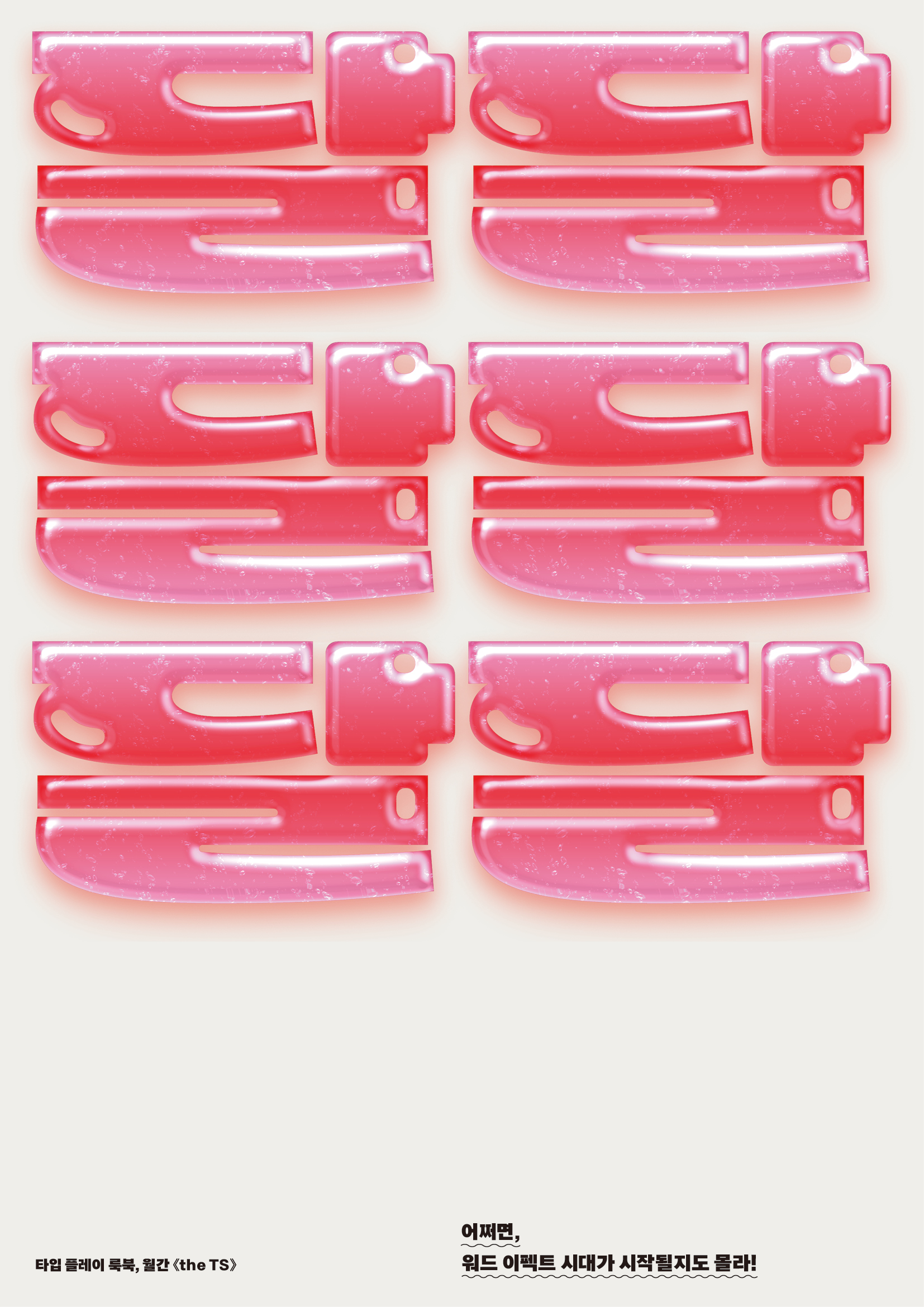 월간 《the TS》 9월호는 올해 5월호의 후속편입니다. 워드 이펙트는 사운드 이펙트(Sound Effect)의 글자 버전이라 할 수 있는데요. 청각을 자극하는 음향 효과처럼 글자(단어)로 사용자의 시각에 가 닿아 감응을 일으키는 타이포그래피 기법의 명명이죠. 타이포 브랜딩 스튜디오 엉뚱상상(DDUNGSANG)의 폰트 디자인 팀 레터빌런(Letter Villain)이 주창하고 연구 중인 프로젝트이기도 합니다. 레터빌런은 워드 이펙트를 “디지털 화면에서 생존할 수 있는 타이포그래피 기법”으로 규정하고 있어요.