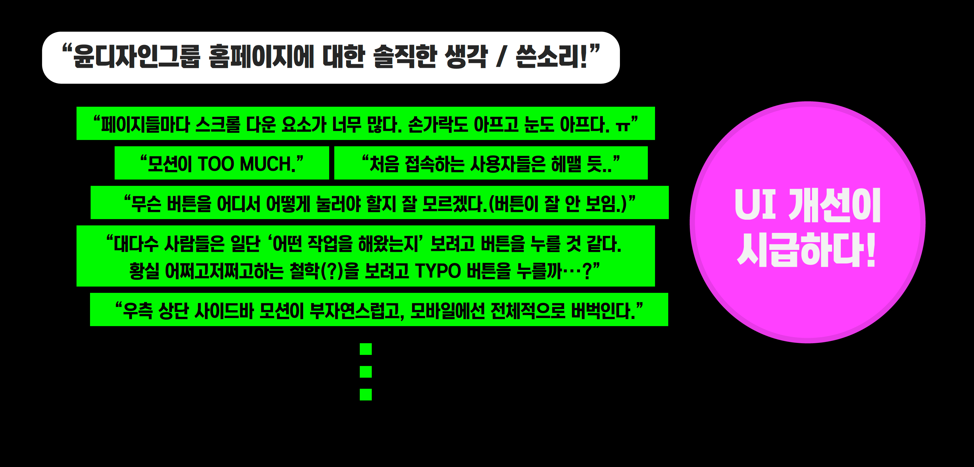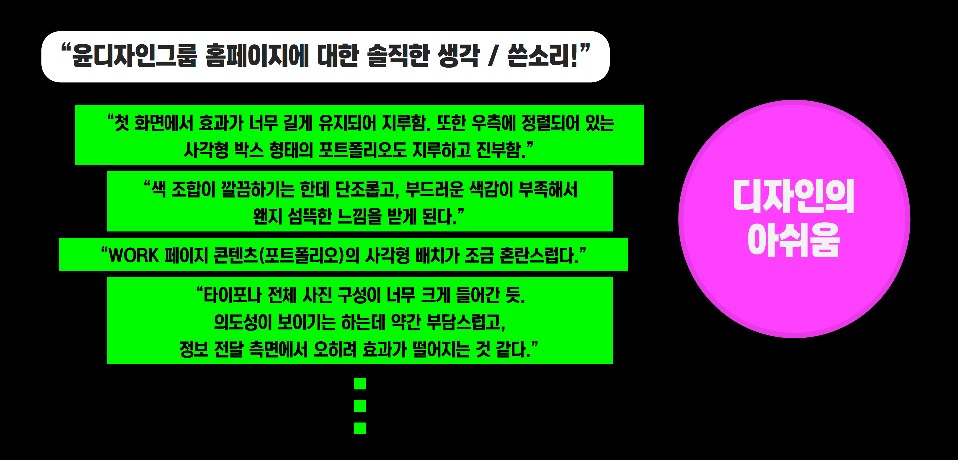 — 현재 사이트를 보고 느낀 점을 솔직하게 적어주세요.