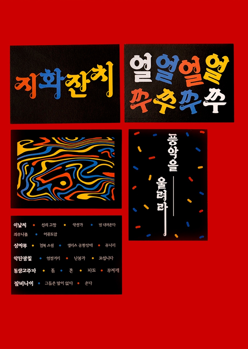 이렇게 한글 레터링에 푹 빠져서 개인 작업을 꾸준히 했어요. 졸업 작품도 레터링 관련 작업이었습니다. 이 졸업작이 좋은 포트폴리오 역할을 해주어서 윤디자인그룹에 입사할 수 있었네요. 어느덧 곧 2년차입니다. 내가 진짜 폰트 디자이너가 될 줄이야! 😁