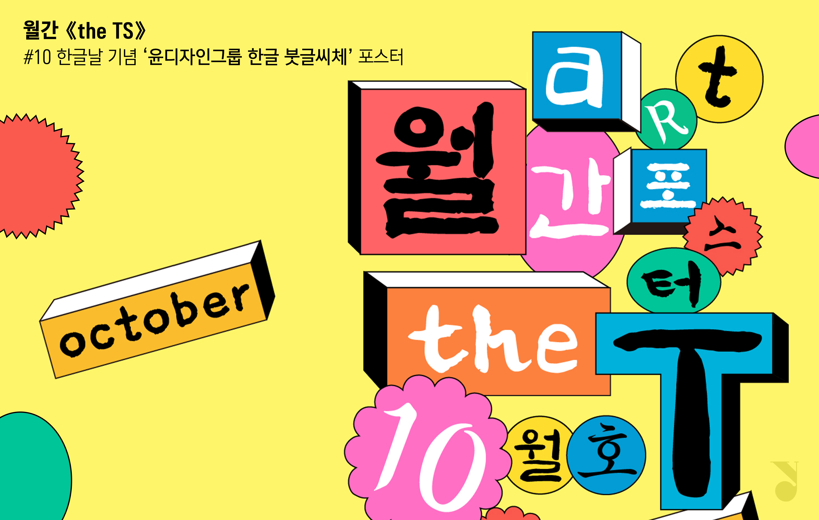 월간 《the TS》 10월호는 576돌 한글날 기념호입니다. 윤디자인그룹이 만든 ‘한글 붓글씨체’ 10종을 모아 타이포그래피 포스터를 만들어봤어요. 윤디자인그룹 TDC(Type Design Center) 소속 폰트 디자이너들이 포스터 디자인을 진행했습니다.